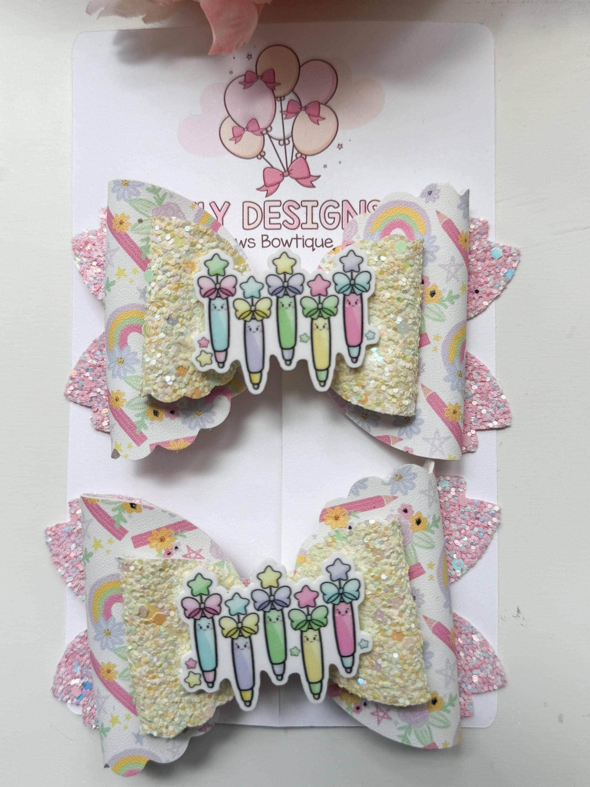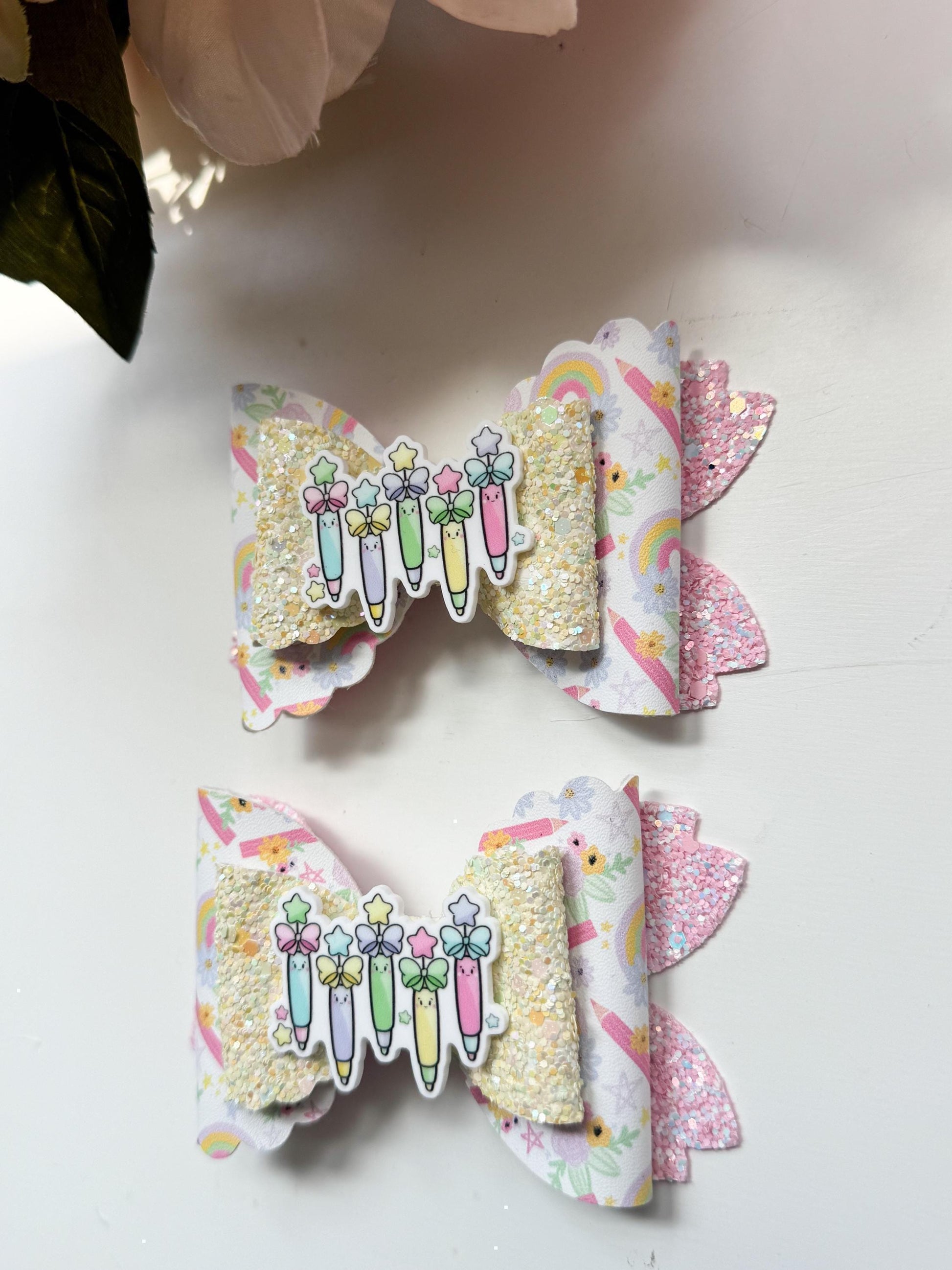 🎀 Pastel Marker School Bow - Back to School Hair Clip 🎀
