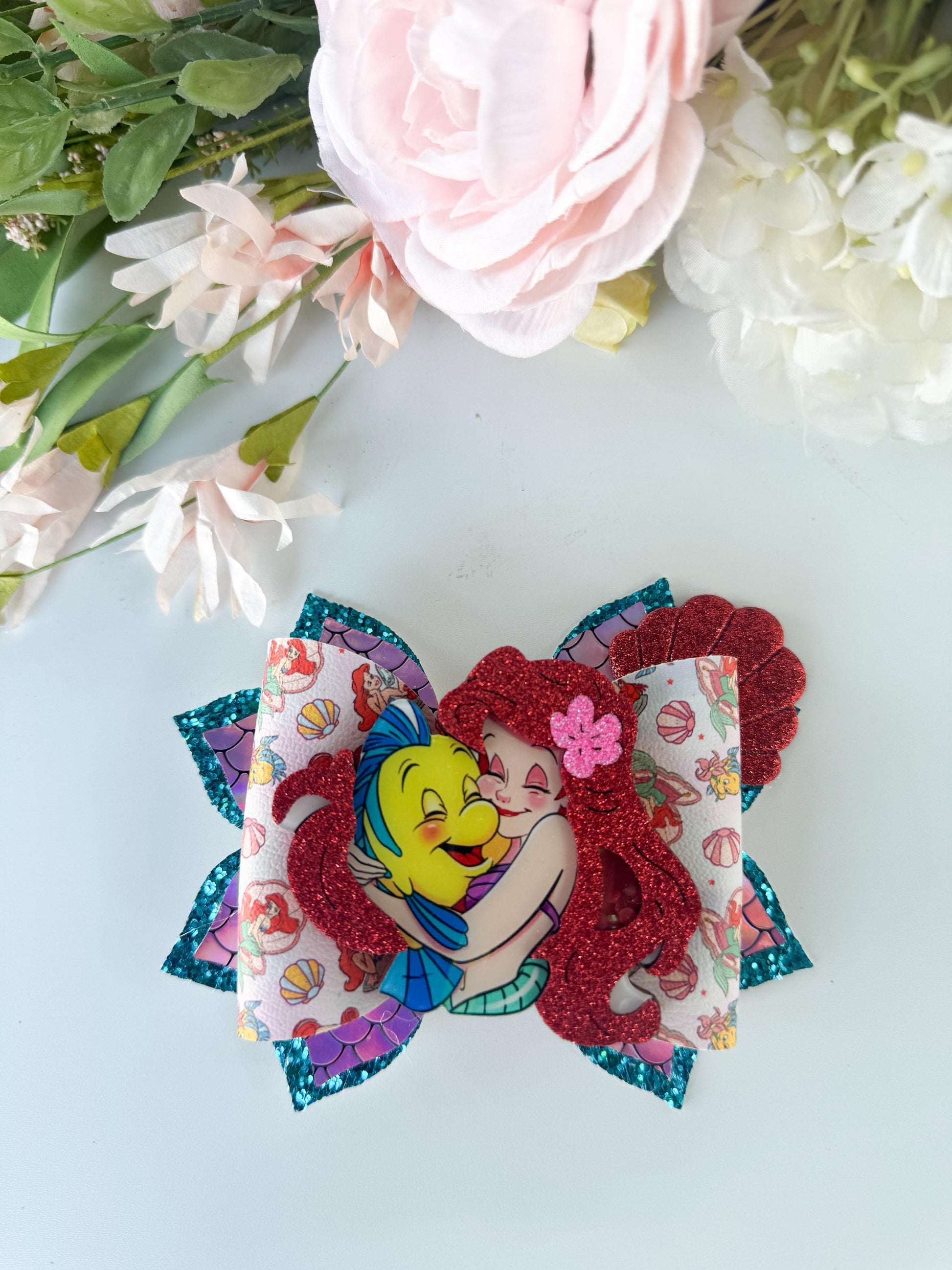 Make a splash with this stunning mermaid-inspired bow! It‘s the perfect accessory for summer outings, beach days, or under-the-sea themed birthday parties. Great as a gift or the finishing touch to a magical outfit.